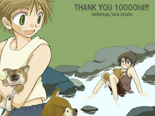 柴犬(仔犬)と戯れる少年 10000hitしてくださった唯磨さんにリクエスト戴きました。 戯れて・・・・ます?(微妙?) 背景に林を入れようとも思ったのですが 何だかゴチャゴチャしてきたので すっぱりと無地で!!