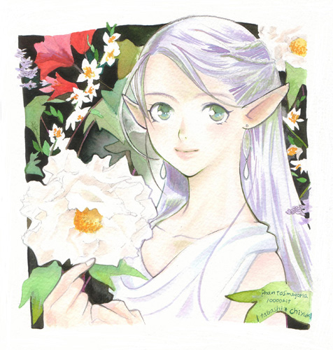 板橋ちゆきさん『エルフ』 ちゆきさんのサイトで10000番GET!して描いて貰いました^^ 元絵はカラーインクで描かれていて これがまた、美しいのです!!! ありがとう〜〜ちゆきさん^^